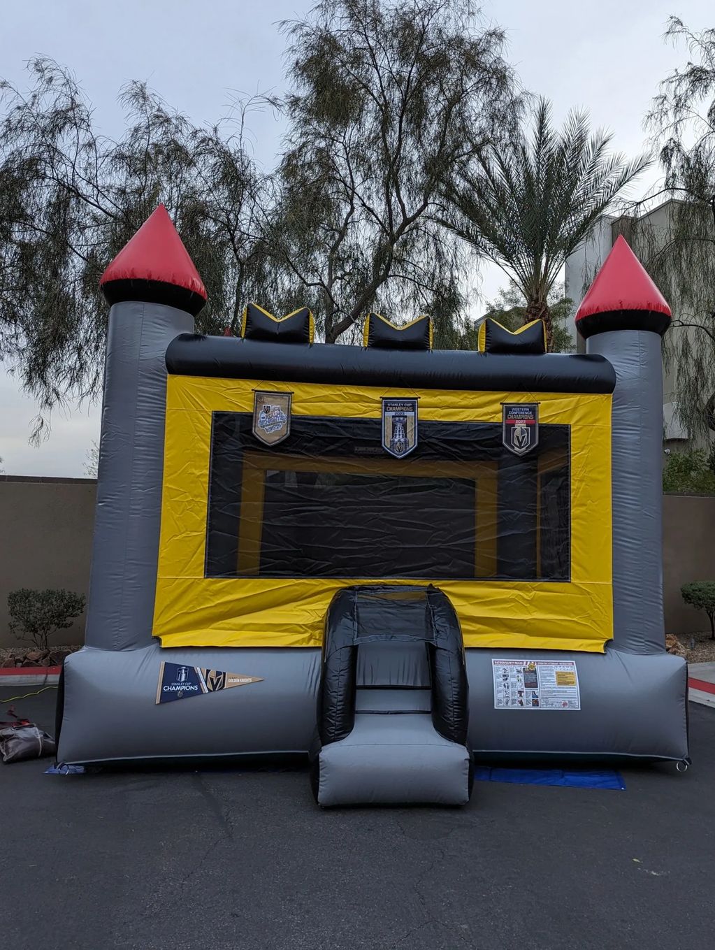 Have a bouncing good time in "The Mini Fortress" VGK. The 2023 Stanley Cup Champions tribute Bounce House to the Vegas Golden Knights is compact, but endless bouncing fun filled inflatable that is sure to be good for all ages and occasions.